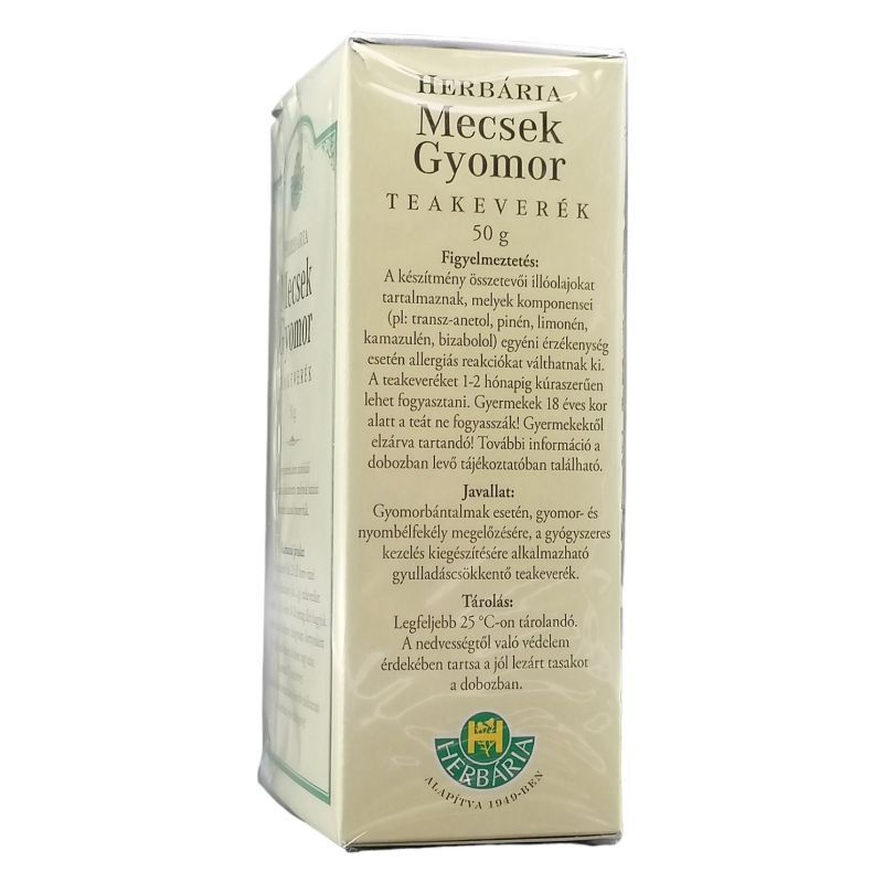 E recept nélkül kapható gyógyhatású szerrel ön enyhe, múló panaszokat kezelhet orvosi felügyelet nélkül. Az optimális hatás érdekében azonban, elengedhetetlen készítmény körültekintő, előírásszerű alkalmazása. Tartsa meg a betegtájékoztatót, mert a benne szereplő információkra a későbbiekben is szüksége lehet. Gyógyszernek nem minősülő gyógyhatású készítmény, melynek hatását irodalmi adatok bizonyítják. Mi a hatóanyaga? 1 csapott evőkanál készítmény (kb. 2 g) 0, 80 g Körömvirágot (Calendulae flos), 0, 40 g kamilla-virágzatot (Matricariae flos), 0, 20 g Közönséges cickafark virágos hajtást (Millefolii herba), 0, 20 g Csipkerózsa áltermést (Rosae pseudo-fructus), 0, 20 g Keserű édeskömény termést (Foeniculi amari fructus), 0, 20 g Közönséges orbáncfű virágos hajtást (Hyperici herba) tartalmaz. Mit tartalmaz még a készítmény? A teakeverék a gyógynövényeken kívül mást nem tartalmaz. Mikor ajánlott a készítmény alkalmazása? Gyomorbántalmak esetén, gyomor-, és nyombélfekély megelőzésére, a gyógyszeres kezelés kiegészítésére alkalmazható gyulladáscsökkentő teakeverék. Mikor nem ajánlott a készítmény alkalmazása? Ne alkalmazza a készítményt, ha az alkotórészekkel - főleg fészkesvirágzatúak -szembeni egyéni túlérzékenysége van. Mit kell tudnia az alkalmazás megkezdése előtt? Fényérzékenység esetén, a teakeverék alkalmazása alatt tartózkodni kell az erősfényhatásoktól (napozás, szolárium). Alkalmazhatják-e a készítményt gyermekek? A teakeverék alkalmazása gyermekeknek nem ajánlott. Alkalmazható-e a teakeverék más gyógyszerekkel? A teakeverék alkalmazása - orbáncfű tartalma miatt - egyidejűleg nem ajánlott a következő gyógyszerekkel, mert azok hatását módosíthatja: INDINAVIR, HIV-, és epilepszia ellenes szerek, kumarin típusú antikoagulánsok (pl. : Syncumar), szájon átszedhető fogamzásgátlók, Digoxin, cyclosporin (pl. : Sandimmun) és theophyllin tartalmú készítmények. Fogyasztható-e a tea terhesség és szoptatás ideje alatt? A teakeverék hatóanyagai átjuthatnak a magzatba, ill. az anyatejjel kiválasztódva a csecsemőbe, ezért ezen élethelyzetekben nem javasolt a tea fogyasztása. Hogyan és milyen adagolásban kell a teát fogyasztani? Egy csészényi (kb. 2, 5 dl) forró vízzel 1 csapott evőkanálnyi (kb. 2 g) tea keveréket leforrázunk, majd lefedve 10-20 percig állni hagyjuk. Leszűrve mézzel édesítve, langyosan, kortyonként fogyasztható étkezés közben vagy után, naponta 2-3 csészényit. Milyen nem kívánt hatást válthat ki a készítmény? Ritkán, világos bőrű egyéneknél erős fényhatásokra (napozás, szolárium) allergiás bőrreakció (bőrpír, viszketés, bőrkiütés) jelentkezhet. Mire kell még ügyelnie a készítmény alkalmazása során? A teakeveréket gyermekek elől el kell zárni! Mennyi ideig alkalmazható a készítmény? 1-2 hónapig kúraszerűen lehet fogyasztani. Azonban ha tünetei nem javulnak, ill. rosszabbodnak, hagyja abba a tea fogyasztását.
