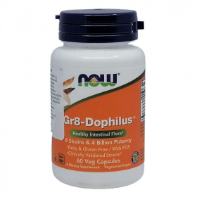 A jótékony hatású probiotikumok rendszeres szedése segíthet a normál, egészséges bélflóra fenntartásában. Különösen ajánlott antibiotikumos terápia alatt és után, mivel felboríthatják vagy elpusztíthatják a természetes bélflórát. Elősegíti a pozitív probiotikus egyensúlyt és támogatja az egészséges immunrendszert. A Gr8-Dophilus kombinációja a 8 különböző faj jótékony baktériumok célja, hogy támogassa gyomor egészség és a test egészséges immunrendszer működését. Javasolt használat: napi 1 db kapszula étkezések között, vagy éhgyomorra. Egyéb összetevők: Cellulóz (kapszula), FOS (Fructooligosaccharides), aszkorbinsav, magnézium-sztearát (növényi forrás), Rice Maltodextrin és Enterális bevonat. Tartalmaz nyomokban szójafehérjét (peptidek). Nem tartalmaz: só, búza, tej, tojás, kagylót. Összetevők: Probiotikus törzsek keveréke: 8 törzs, 4,0 milliárd szervezettel, ezekből Lactobacillus acidophilus: 1200000000, Lactobacillus casei: 600000000, Lactobacillus rhamnosus: 600000000, Lactobacillus salivarius: 600000000, Streptococcus thermophilus: 400000000, Bifidobacterium bifidum: 200000000, Bifidobacterium longum: 200000000, Bifidobacterium lactis: 200000000. A felhasználási javaslatban megadott mennyiséget ne lépje túl! A termék nem helyettesíti a vegyes étrendet és az egészséges életmódot. A doboz gyermekek elől gondosan elzárva tartandó!?