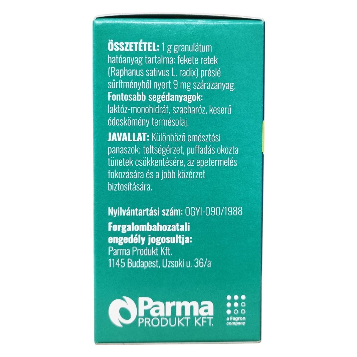 Fekete retek (Raphanus sativus L. radix) préslé sűrítményből nyert 9 mg szárazanyag 1 g granulátumban.