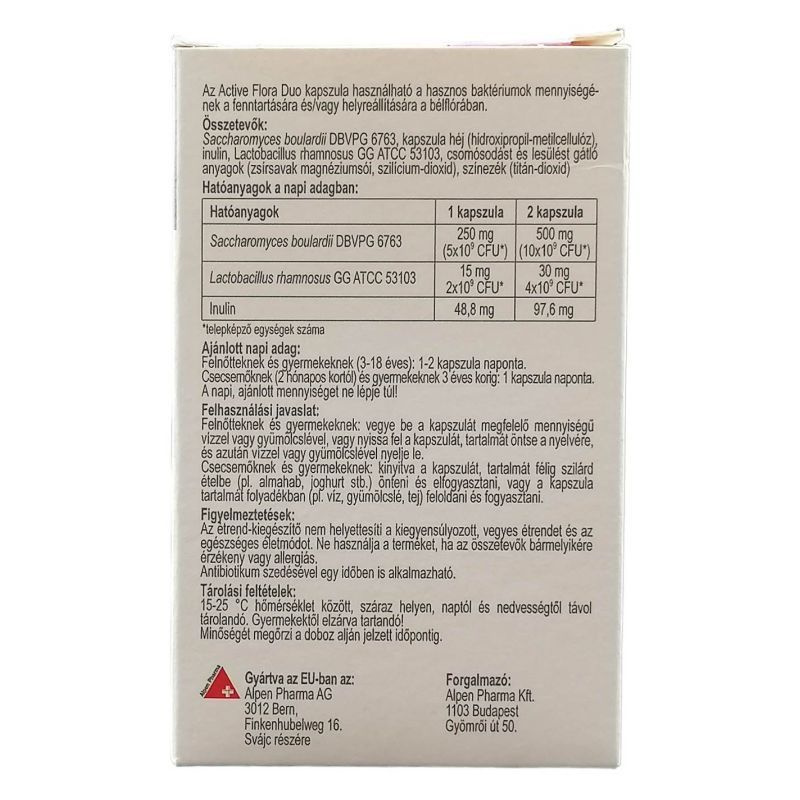 Az Active Flora Duo kapszula élőflórát és prebiotikumot tartalmaz, amely hozzájárulhat a bélflóra hasznos baktériumainak fenntartásához vagy helyreállításához.