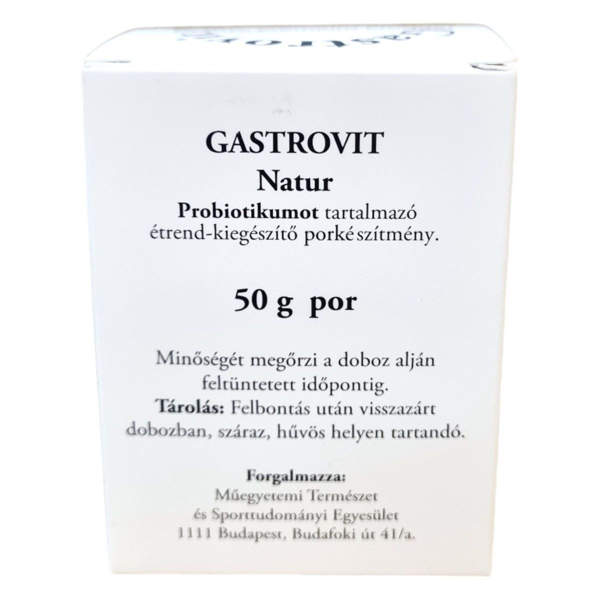 A Gastrovit Natur probiotikumot tartalmazó étrend-kiegészítő porkészítmény, amely Lactobacillus és Bifidobacterium törzseket tartalmaz. A termék kristályos dextróz alapú, amely segíti a baktériumok stabilitását. Élőflórás probiotikumként hozzájárulhat a bélrendszer természetes mikrobiális egyensúlyának fenntartásához. A napi adag egyszerűen bekeverhető folyadékba, és könnyen beilleszthető a mindennapi étrendbe. A terméket a Premium Product Kft. gyártja, forgalmazója a Műegyetemi Természet- és Sporttudományi Egyesület. Felbontás után javasolt hűvös, száraz helyen tárolni, a csomagolást gondosan visszazárva.
