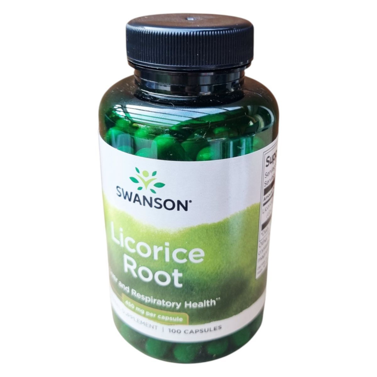 A SWANSON Licorice Root Herbal Supplement egy 100 kapszulás kiszerelésű étrend-kiegészítő, amely édesgyökér-kivonatot tartalmaz. A termék célja, hogy támogassa a máj és a légzőrendszer egészségét. Az édesgyökér (Glycyrrhiza glabra) 450 mg-os mennyiségben található meg minden kapszulában. Az összetevők között szerepel a zselatin, mikrokristályos cellulóz, magnézium-sztearát és szilícium-dioxid. A termék használata során fontos betartani az ajánlott napi mennyiséget, és figyelembe venni a figyelmeztetéseket, különösen a szoptatós anyák és gyermekek esetében. Az OGYÉI notifikációs szám: 29462/2018.