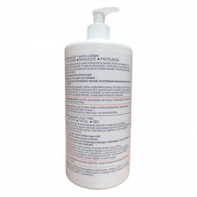 Praktikus pumpás adagolóval, mindennapos használatra. Aktív hatóanyagai: 3% urea, lenmag biokomplex, glicerin, tejsav.