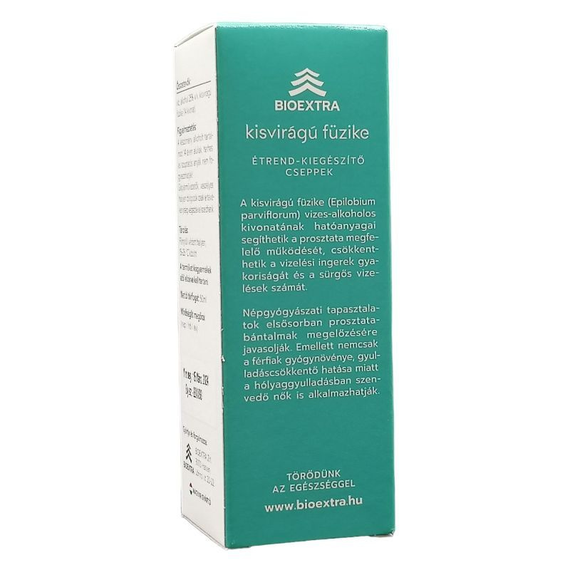 A kisvirágú füzike vizes-alkoholos kivonata, étrend-kiegészítő készítmény. Hatóanyagai segíthetik a prosztata megfelelő működését, csökkenthetik a vizelési ingerek gyakoriságát, a sürgős vizelések számát.A növény hatóanyagai antioxidáns tulajdonsággal is rendelkeznek. Összetevők: Víz, etilalkohol, Epilobii herba (Kisvirágú füzike) kivonat. Hatóanyag 1 egységben (1kapszula / 1tabletta / folyadékok teljes mennyisége): Epilobii herba (Kisvirágú füzike) kivonat, 1,18 g. Hatóanyag a napi adagban: 120 csepp = 71 mg kivonat. Notifikációs szám: 11118/2012