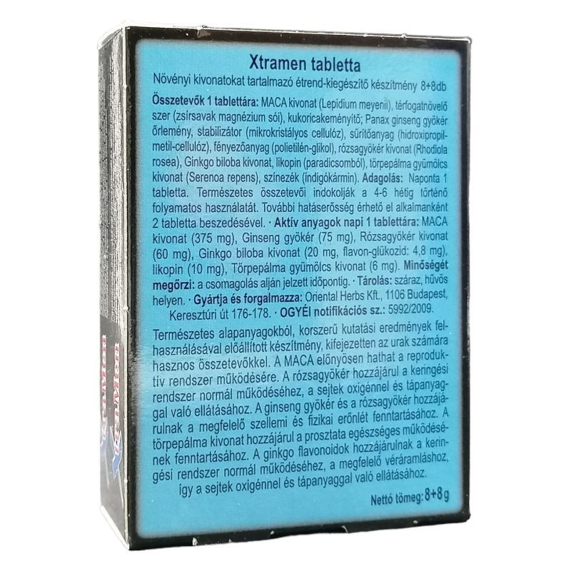 A ginseng gyökér és a rózsagyökér hozzájárul a megfelelő szellemi és fizikai erőnlét fenntartásához. A törpepálma kivonat és a likopin hozzájárul a prosztata egészséges működésének fenntartásához. A ginkgo flavonoidok hozzájárulnak a keringési rendszer normál működéséhez, a megfelelő véráramláshoz, így a sejtek oxigénnel és tápanyaggal való ellátásához. Naponta 1 tabletta bevétele javasolt.