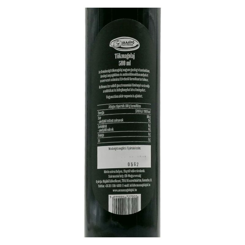 Hidegen sajtolt, 100 % natúr tökmagolaj. Javasolt elfogyasztása napi 1 evőkanállal.