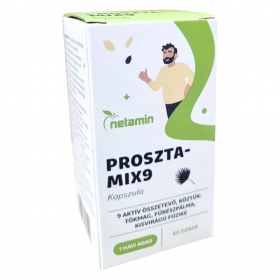 A Netamin Prosztamix9 kapszula 9 aktív összetevőt tartalmazhat, mint például tökmag, fűrészpálma és kisvirágú füzike, amelyek hozzájárulhatnak a férfiak egészségének támogatásához.