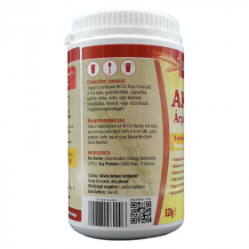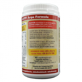 Fogyasztása: 1 adag elkészítése: keverjünk 2 evőkanál (20g) Árpa Formulát 2-3 dl rostos üdítőbe, hideg teába, tejbe, joghurtba, kefirbe. Majd mixer pohárban rázzuk fel, és máris fogyasztható a laktató ital. Kalória tartalma: 70kCal/adag. Az aktív árpa formulát, jótékony élettani hatásai miatt, ajánljuk még szív és érrendszeri betegeknek, magas koleszterinszint esetén, asztmásoknak, ekcémásoknak, durva pattanásos bőrűeknek, cukorbetegeknek, fogyókúrázóknak, vérszegényeknek, fáradékonyaknak, ízületi bántalmakban szenvedőknek, gyomor, bélrendszeri betegeknek. Székrekedéssel, emésztési problémákkal küszködőknek. Az aktív árpa formula miben különbözik a többi táplálék-kiegészítőtől? Abban, hogy nem táplálék-kiegészítő, hanem komplex táplálék. Az emberek tudják, hogy vitamin és ásványi anyag pótlásra szorulnak, mert az utóbbi 100 évben ételeink minősége sokat romlott az állományjavítók, tartósítók, szín és ízesítő anyagok, stb. használata miatt. Ezzel szemben az aktív árpa formula egy ideális étel, melyet fogyasztva feltöltődünk 18 féle ásványi anyaggal, 15 féle vitaminnal és enzimekkel. 30%-os fehérjetartalma mikroszinten biztosítja az összes aminosavat szervezetünknek. Magas rost tartalma az emésztést segíti. Lassan felszívódó szénhidrát-tartalma energiát ad, és 24%-os glikémiás indexe miatt a zsírégető étrend alapvető alkotórésze. Vacsora helyett fogyasztva megszabadít zsírpárnáinktól!