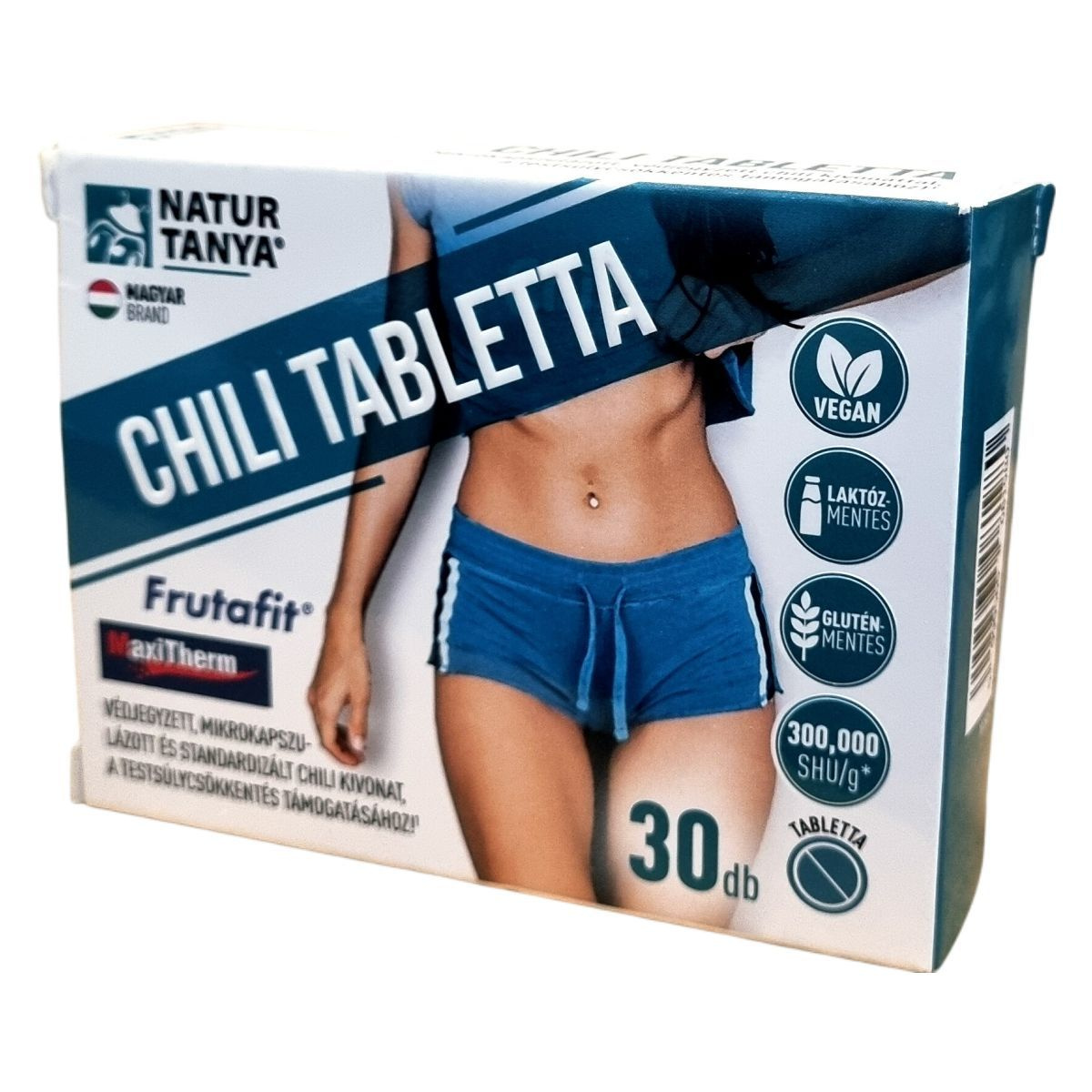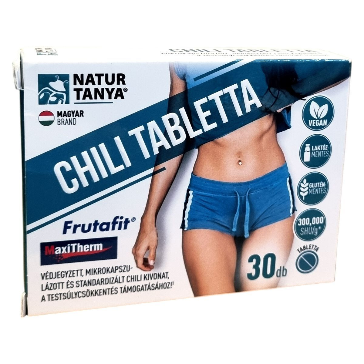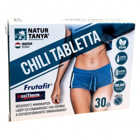 A Natur Tanya® CHILI TABLETTA egy magyar márkájú étrend-kiegészítő, amely mikrokapszulázott chili paprika kivonatot, zöld tea kivonatot és cikória gyökérből származó inulint tartalmaz. A termék laborban bevizsgált, glutén- és laktózmentes, valamint vegán étrendbe illeszthető. A chili paprika kivonat különösen ajánlott lehet fogyókúrázóknak, mivel támogathatja a testsúlycsökkentést. A VitaPearl™ mikrokapszulázási technológiának köszönhetően a termék nem okozhat gyomor-bélrendszeri panaszokat, irritációt, és biztonságos, jól tolerálható lehet. A termék nem tartalmaz mesterséges tartósítószert, színezéket és aromát, és a megvásárlásával magyar munkahelyeket támogathat.