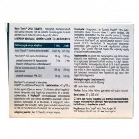 A Natur Tanya® CHILI TABLETTA mikrokapszulázott chili kivonatot, zöld tea kivonatot és cikória gyökérből származó inulint tartalmazhat, amelyek támogathatják a testsúlycsökkentést és a fogyókúrás programokat.