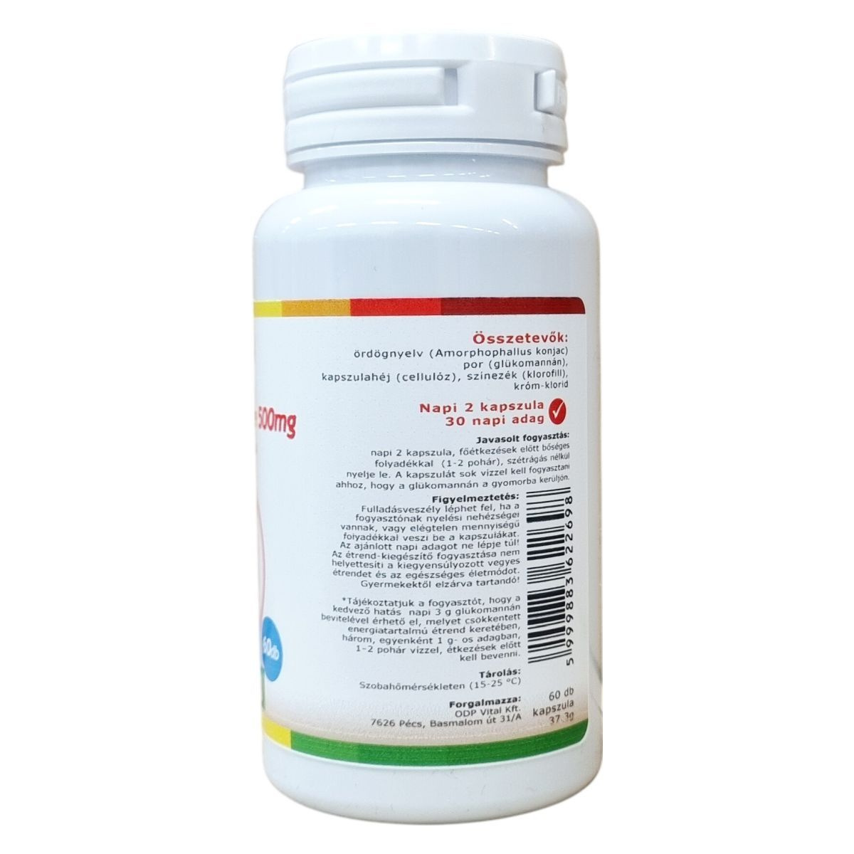 Az Ördögnyelv Forte 500mg kapszula glükomannán tartalmú porból és króm-kloridból készül, melyek együttesen egészséges étrend mellett hozzájárulhatnak a testtömeg csökkenéséhez. A kapszulák bevételét bőséges folyadékkal ajánljuk, mert a glükomannán akkor fejtheti ki hatását, ha vízzel jut a gyomorba. A napi javasolt adag 2 kapszula, amely 30 napi adagnak felel meg. Fontos figyelembe venni, hogy a megfelelő napi glükomannán bevitel 3 gramm, melyet akár három egyenként 1 grammos adagban is be lehet venni. Az étrend-kiegészítő nem helyettesíti a kiegyensúlyozott étrendet és életmódot, és a termék gyermekek elől elzárva tartandó.