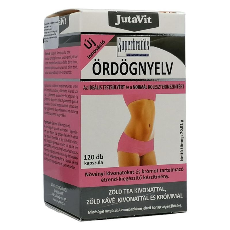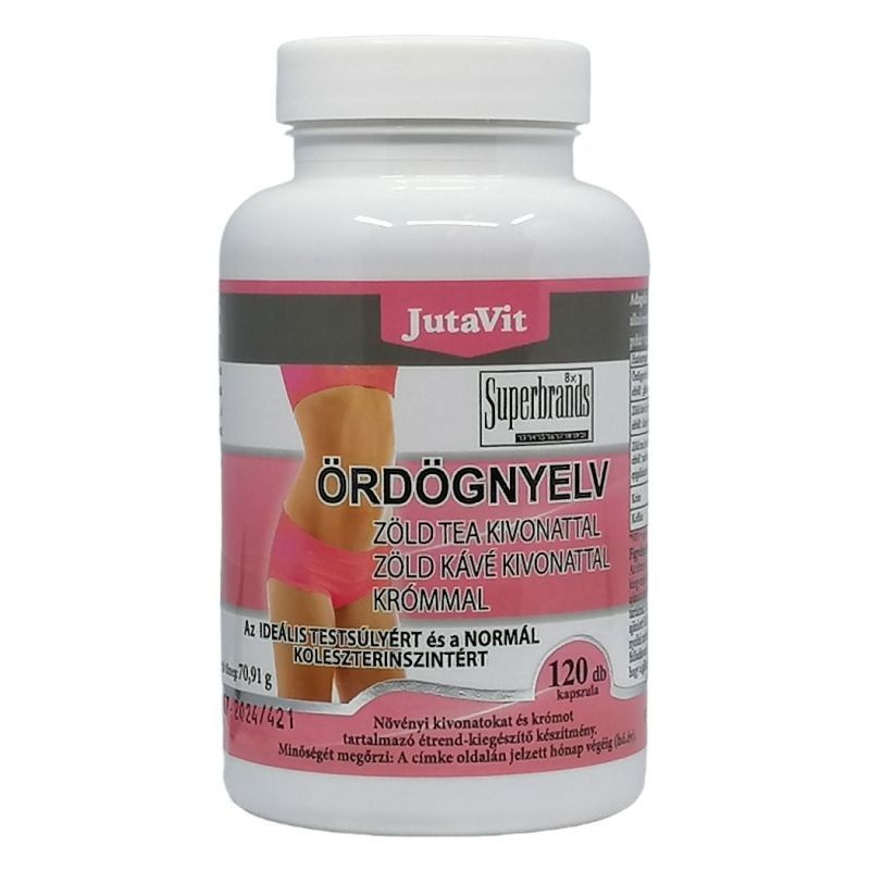 Jutavit Ördögnyelv kapszula az ideális testsúlyért és koleszterinszintért zöldtea kivonattal, zöldkávé kivonattal és krómmal.