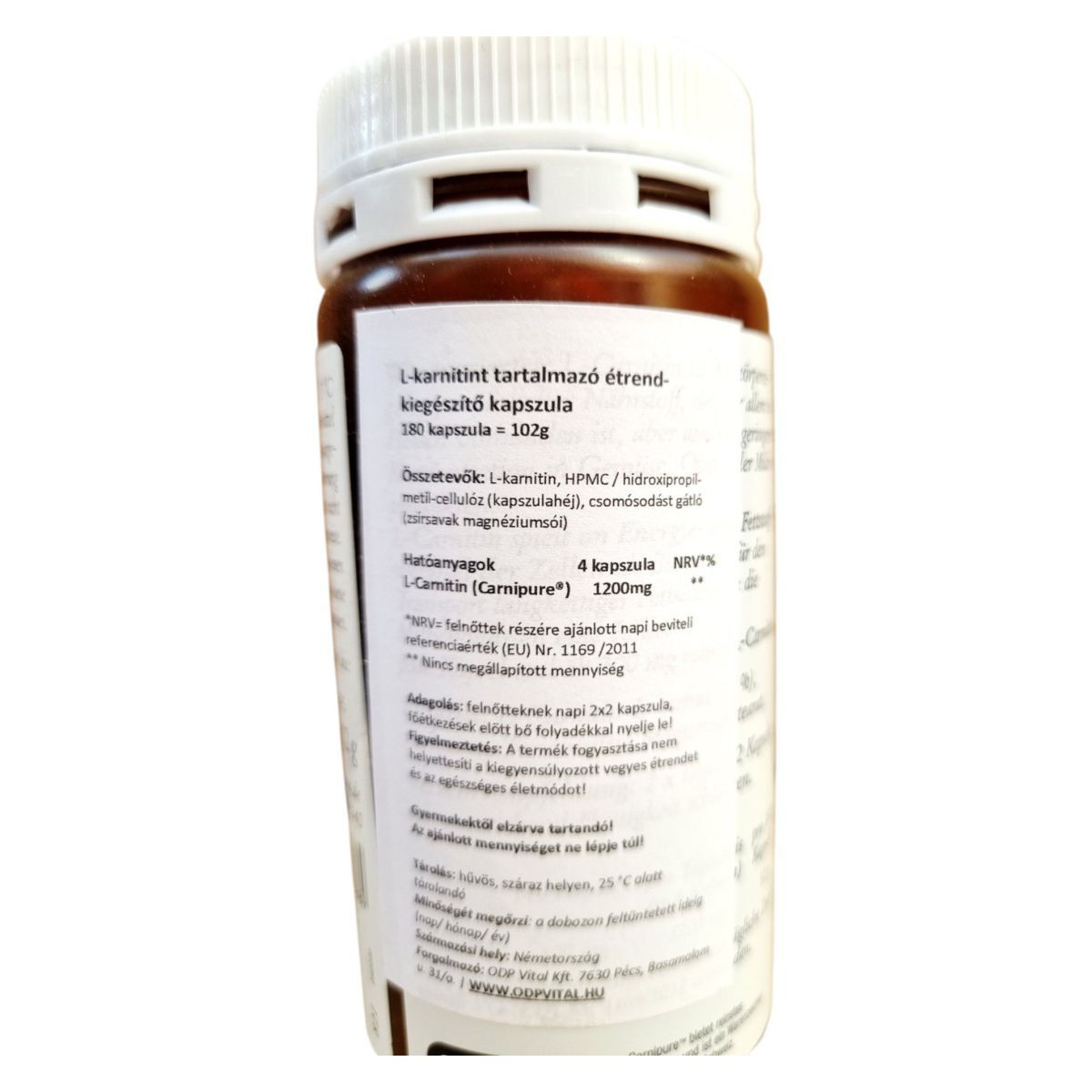 L-karnitin, HPMC / hidroxi-propil-metil-cellulóz (kapszulahéj), csomósodást gátló (zsírsavak magnézium sói)