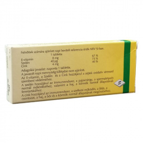 A készítmény antioxidáns hatóanyagai a károsító környezeti tényezők (dohányzás, kipufogógázok, por stb.) hatására szervezetünkben képződő szabad gyökök megkötésében szerepet játszva védőhatást fejtenek ki. Különösen ajánlott fokozott igénybevétel, diéta, fogyókúra esetén. Napi egy tabletta hozzájárul a felnőttek napi szelén-, E-vitamin és cink szükségletének fedezéséhez. Hatóanyag tartalom: 10 mg E-vitamin, 30 µg szelén, 12 mg cink tablettánként. Adagolási javaslat: napi 1 tabletta.