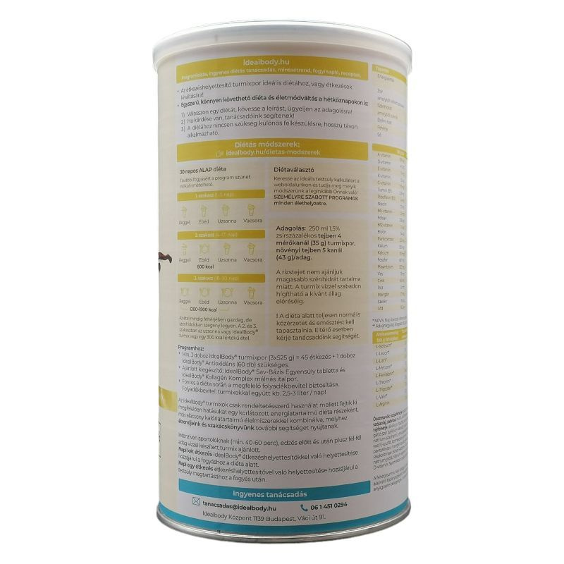 Vanília ízű Idealbody fogyókúrás italpor hatékony segítség az álomalak elérésében, finom ízvilággal.