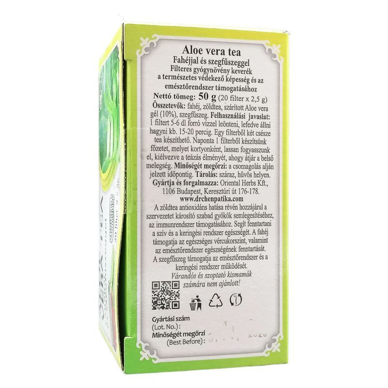 Az Aloe vera segít fenntartani a szervezet természetes védekező képességét, a mikroorganizmusokkal szembeni védelmét. Antioxidánsként védi a sejteket és a szöveteket a szabad gyökök károsító hatásaival szemben. Támogató hatással van az emésztőrendszer működésére.