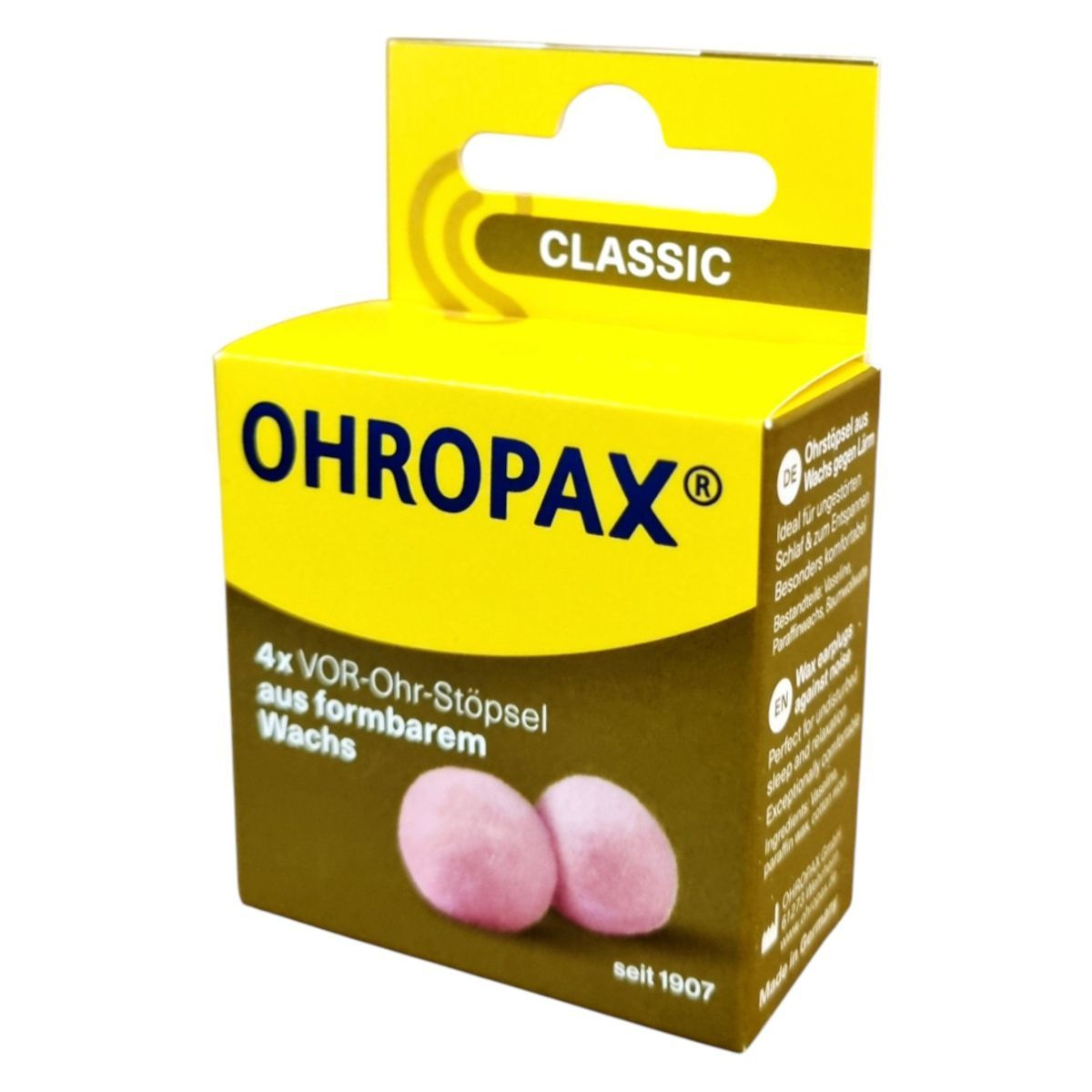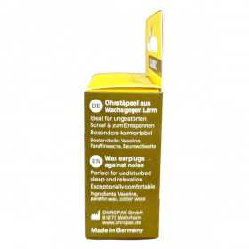 Az OHROPAX Classic viaszos füldugók 1907 óta elérhetők, és kiváló minőségű zajvédelemre szolgálnak. A termék dermatológiailag tesztelt, ami hozzájárulhat a bőrbarát használathoz. A füldugók hangcsillapítási értékei: SNR 21 dB, magas frekvencián 28 dB, közepes frekvencián 18 dB, alacsony frekvencián 14 dB. Az EN 352 szabványnak megfelelően készültek, és CE jelöléssel rendelkeznek. Különösen kényelmes viseletet biztosíthatnak, és ideálisak lehetnek a zavartalan alváshoz és pihenéshez. A termék Németországban készült.