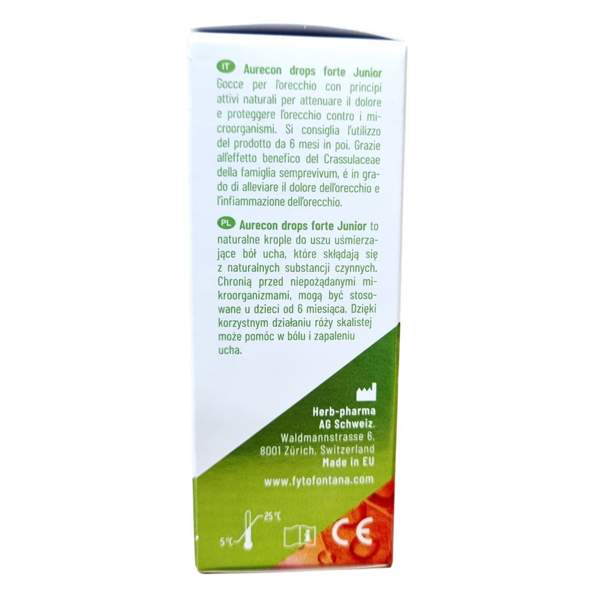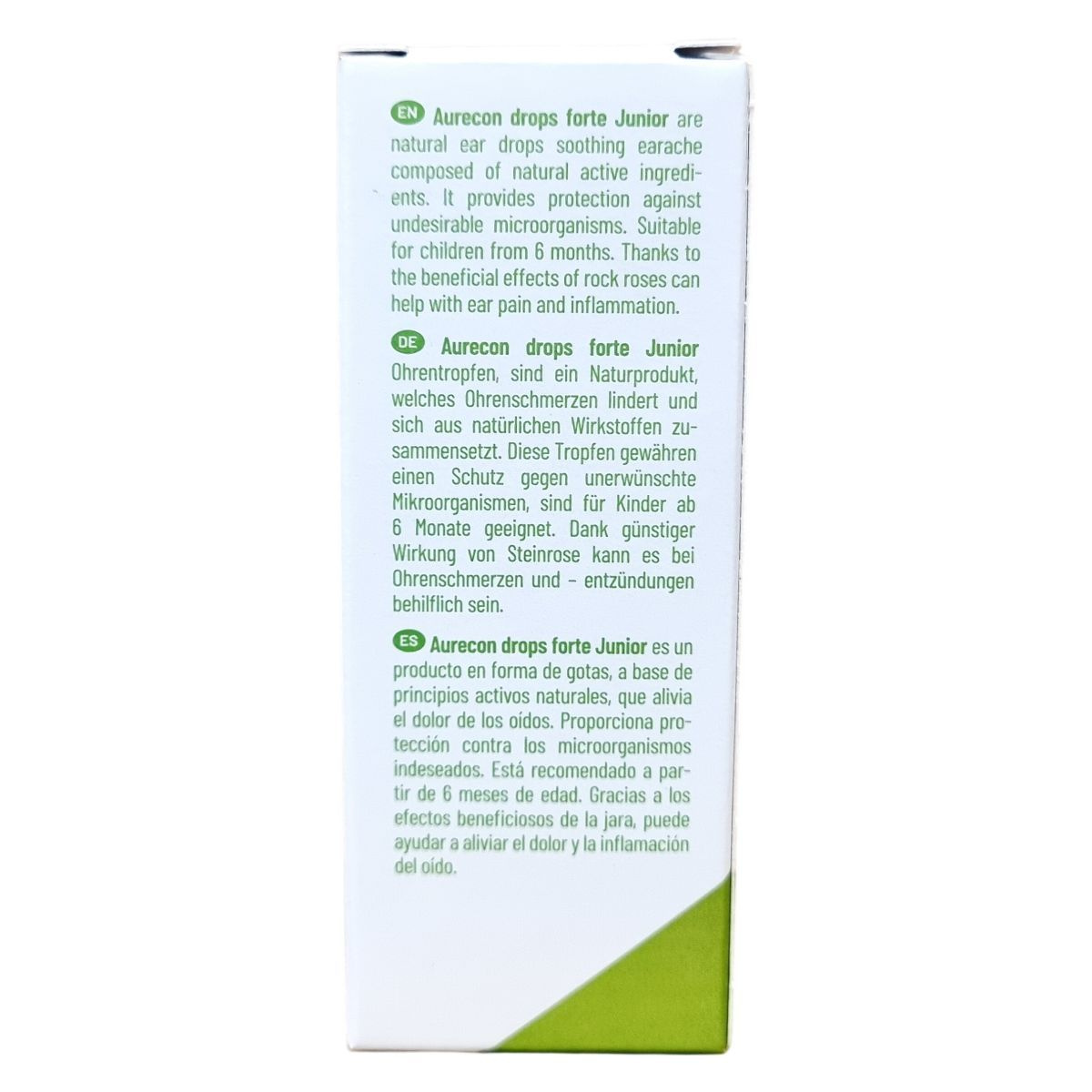Az Aurecon drops forte Junior természetes eredetű fülcsepp gyermekek számára, amely a kövirózsa jótékony hatását kihasználva segíthet a fül fájdalmának és gyulladásának enyhítésében. Az összetevők kombinációja védi a fület a nem kívánt mikroorganizmusok ellen, így hozzájárul a fülfájdalmak csökkentéséhez. A termék megfelelő 6 hónapos kortól, megkönnyítve ezzel az érzékeny fülű gyermekek komfortérzetét.