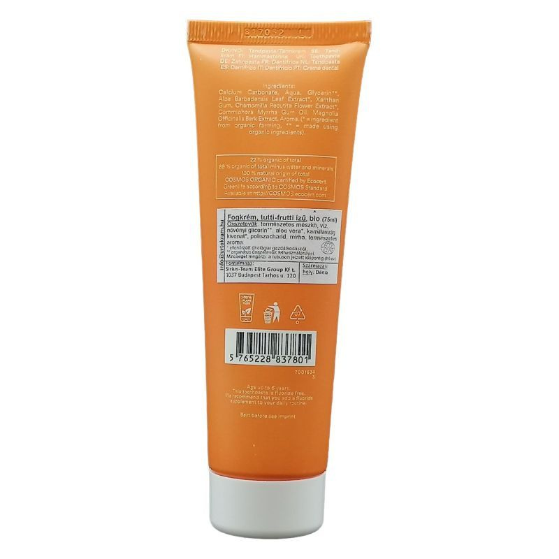 Kellemes gyümölcsös íze miatt kedvelik a gyermekek az Urtekram tutti frutti ízű natúr gyerek fogkrémet.