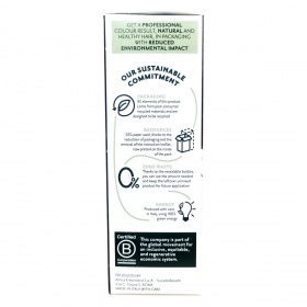 A csomagolás újrahasznosított anyagokból készül, csökkentett papírfelhasználással. Újrazárható flakonjai lehetővé teszik a maradék, nem összekevert termék későbbi felhasználását. Olaszországban gyártva, 100% zöld energiával.