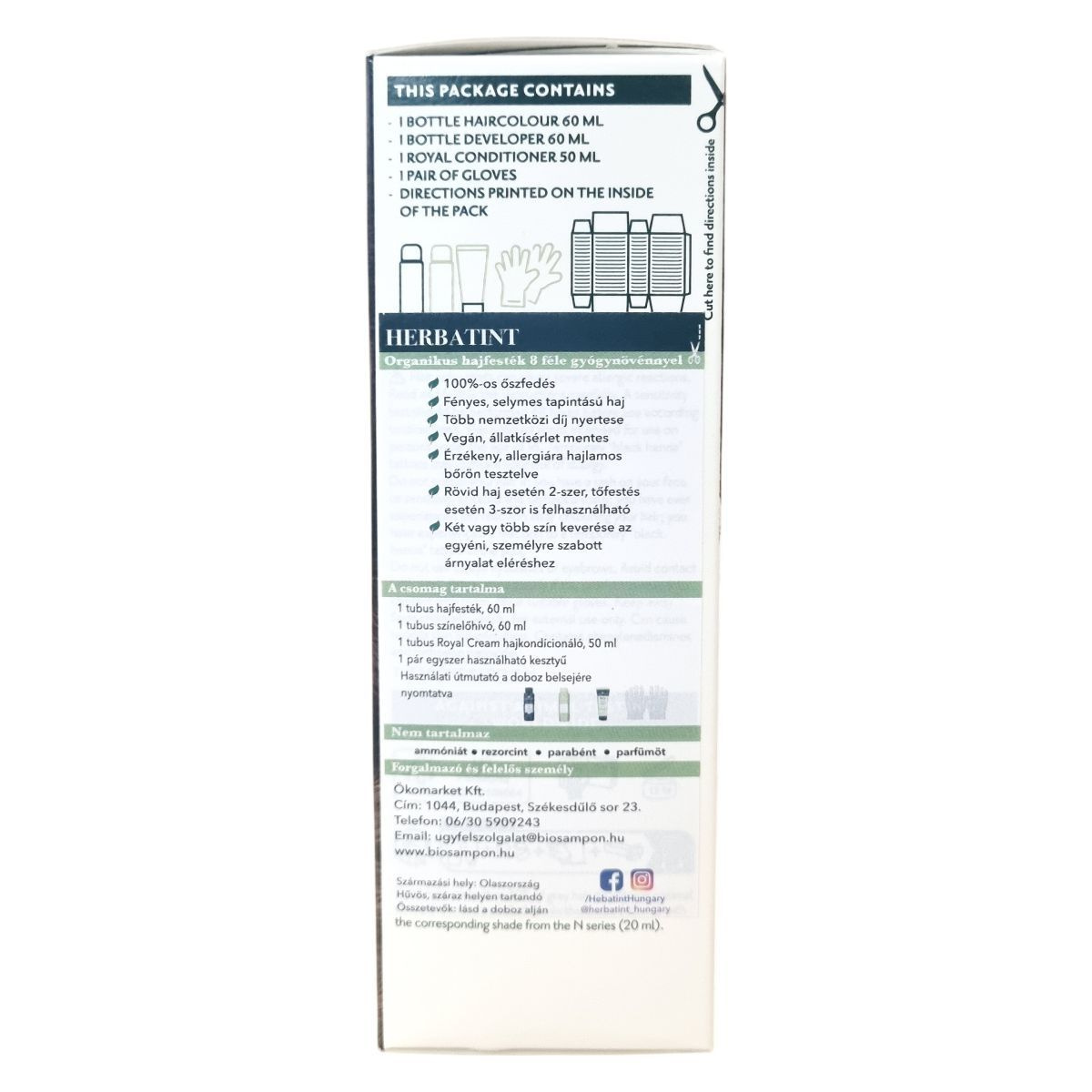 A Herbatint permanent haircolour gel egy gél állagú, csepegésmentes hajfesték, amely egyenletes felvitelt biztosít. A csomag tartalmaz egy 60 ml-es hajfestéket, egy 60 ml-es előhívót, egy 50 ml-es Royal Conditioner kondicionálót és egy pár kesztyűt. A Royal Conditioner savas pH-jú kezelés, amely segít a haj kutikulájának visszazárásában és a szín tartósságának növelésében. A feldolgozási idő 40 perc, a termék akár két alkalommal is felhasználható.