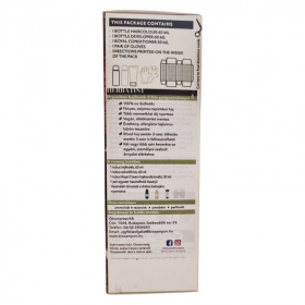 Hajfesték: Laureth-4, Propylene Glycol, Aqua (Water), PEG-2 Oleamine, Ethanolamine, Oleic Acid, P-Phenylenediamine, Aloe Barbadensis Leaf Juice, Hamamelis Virginiana Leaf Extract, Betula Alba Leaf Extract, Echinacea Angustifolia Root Extract, Juglans Regia Leaf Extract, Rheum Officinale Stem Extract, Cinchona Calisaya Bark Extract, Limnanthes Alba Seed Oil, 2-Amino-3-Hydroxypyridine, P-Aminophenol, Tetrasodium Glutamate Diacetate, 4-Chlororesorcinol, P-Methylaminophenol Sulfate, Cetrimonium Chloride, Sodium Metabisulfite, Glycerin.