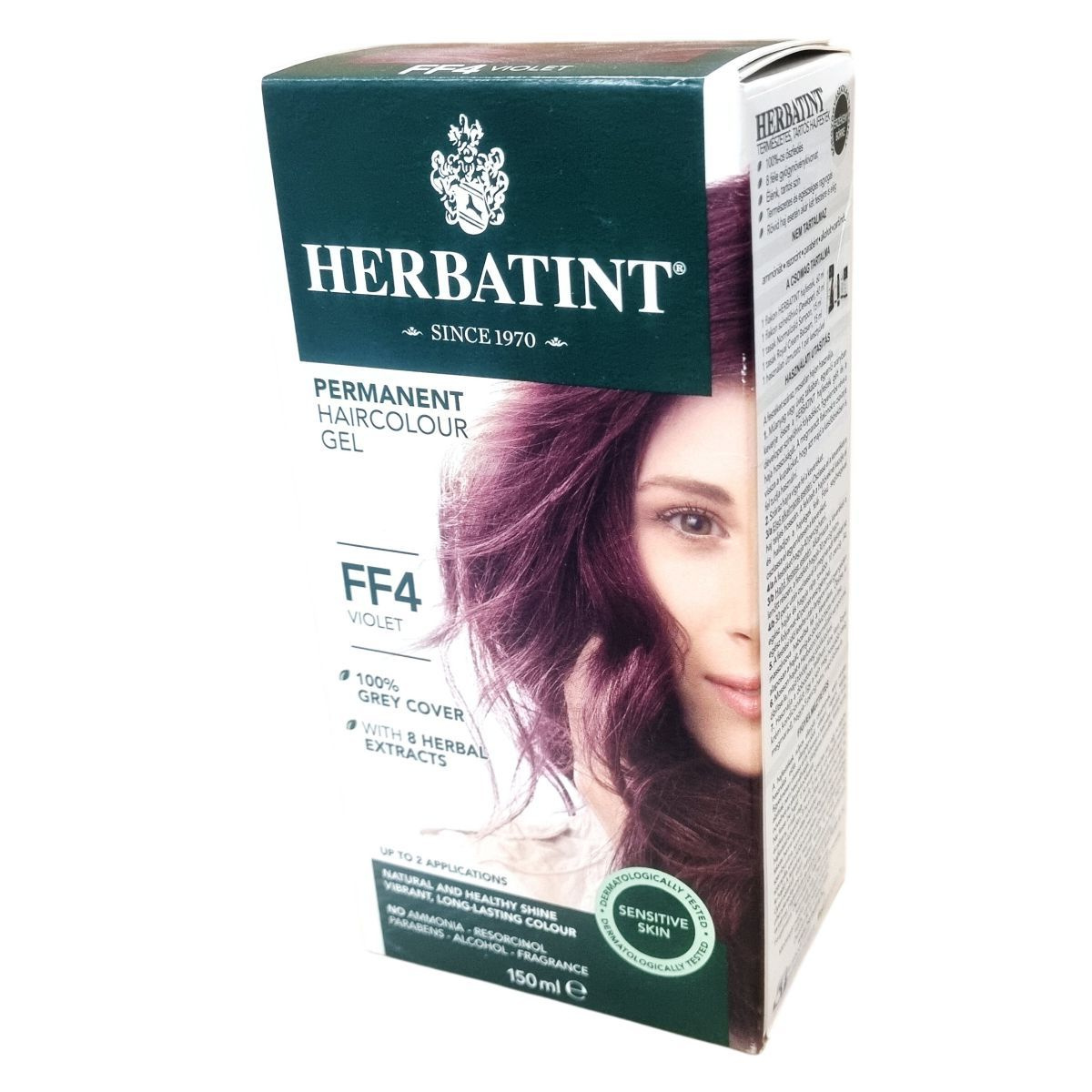 A HERBATINT FF4 VIOLET egy természetes összetevőkre épülő, tartós hajfesték, amely élénk, hosszú ideig megmaradó színt és természetes fényt biztosít, miközben 100%-os őszfedést nyújt.