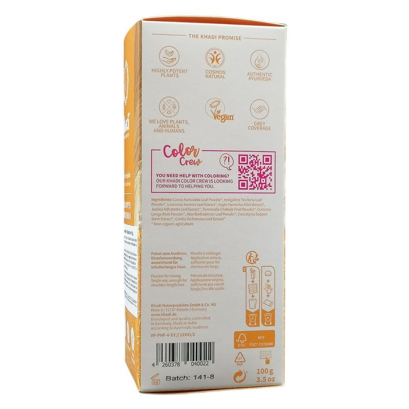 A Khadi Középszőke hajfesték az ősz hajnak bizonyos hatóidő után középszőke és közép vöröses szőke árnyalatot biztosít. Tartós fény és szín. A szőke és a középszőke hajszín a növényi hajfesték által valamivel sötétebb lesz. A sötétebb hajat az alkalmazás során ápolja, de színbeli változást általában nem okoz. Nem világosítja a hajat! Nem tartalmaz kémiai adalékanyagokat, tartósítószert vagy mesterséges színezéket.