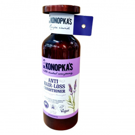 A Dr. Konopka's hajhullás elleni balzsam egy természetes natúrkozmetikum, amely recept alapján készült, és generációról generációra öröklődő gyógynövényes formulán alapul. A készítmény fő hatóanyagai az N37 és N52 számú organikus gyógynövényolajok, valamint organikus levendulaolaj, melyek vitaminokban gazdag összetételükkel erősítik a hajszálakat, csökkentik a töredezést, és egészséges, fényes kinézetet biztosítanak. A termék minden hajtípus számára alkalmas, és maximális hatás érhető el vele, ha Dr. Konopka's hajhullás elleni samponnal együtt használják. Kiszerelése 500 ml, újrahasznosítható PET csomagolásban kapható. Az alkalmazás egyszerű: a nedves hajra kevés balzsamot kell felvinni, 3-5 percig hatni hagyni, majd alaposan leöblíteni. A termék vegán és megfelel a Cosmos Natural minősítés szigorú követelményeinek.