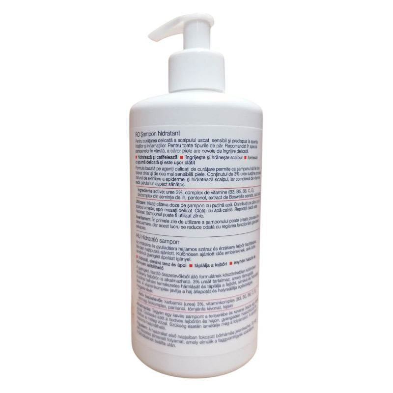 Hosszan tartó hatású termék. Ajánlott a száraz, érzékeny, irritációnak és gyulladásoknak kitett fejbőr gyengéd tisztítására. Minden hajtípusra. A sampon urea-tartalma elősegíti a fejbőr természetes hámlását és hidratálja azt. Gyengén habzik, így ágyhoz kötött betegeknél alkalmazva is könnyen kiöblíthető. Használata után a fejbőr sima és táplált marad. Helyreállítja a haj egészséges megjelenését.