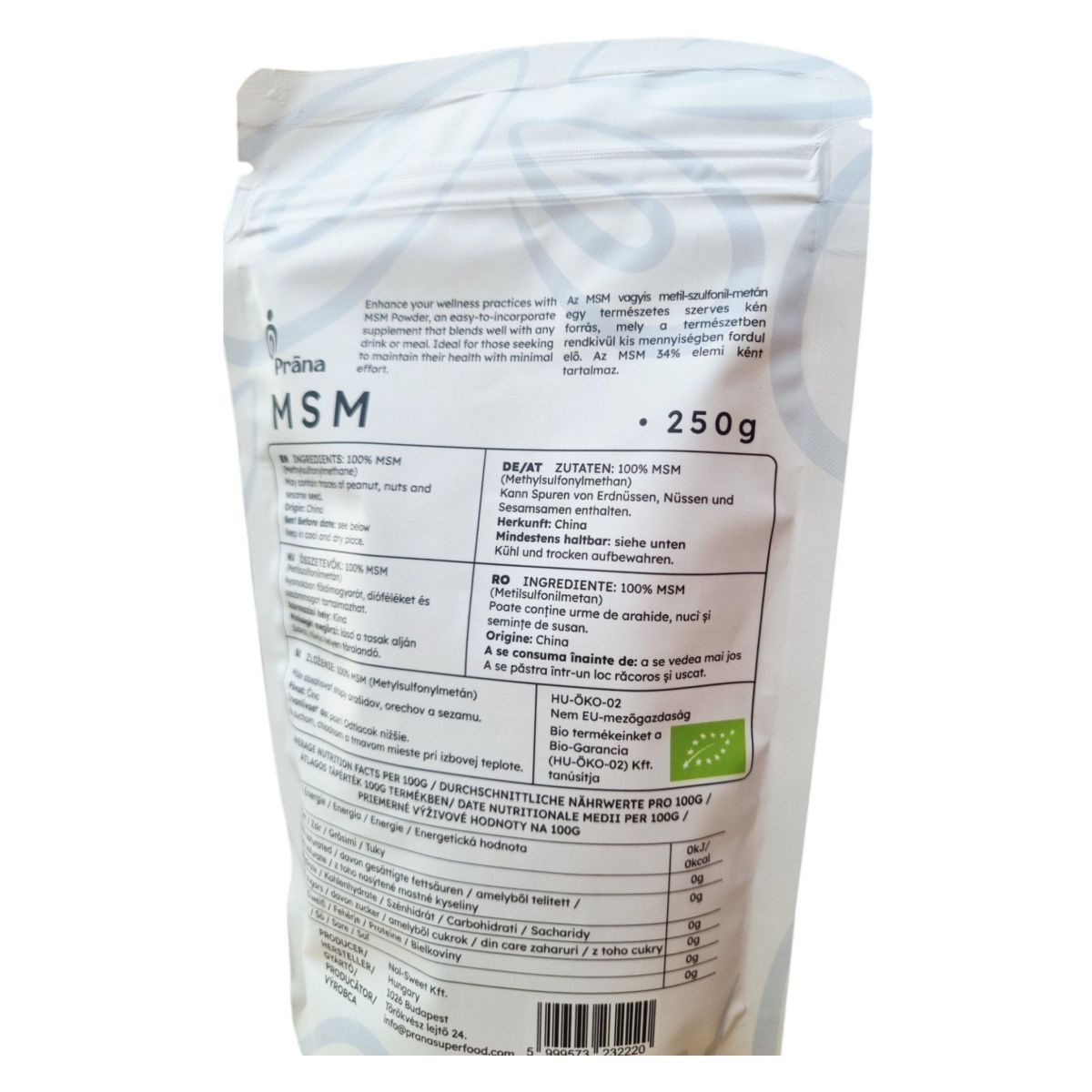 A Prāna MSM egy 100% természetes étrend-kiegészítő, amely Kínából származik. A termék bio, vegán és gluténmentes, így különböző étrendi igényekhez is alkalmazkodik. Az MSM (Metil-szulfonilmetán) egy olyan vegyület, amely hozzájárulhat az általános jóléthez, és könnyen beilleszthető a mindennapi étrendbe. A termék nyomokban földimogyorót, dióféléket és szezámmagot tartalmazhat, ezért allergiásoknak érdemes figyelniük erre. A Prāna MSM ideális választás lehet azok számára, akik természetes módon szeretnék támogatni egészségüket.