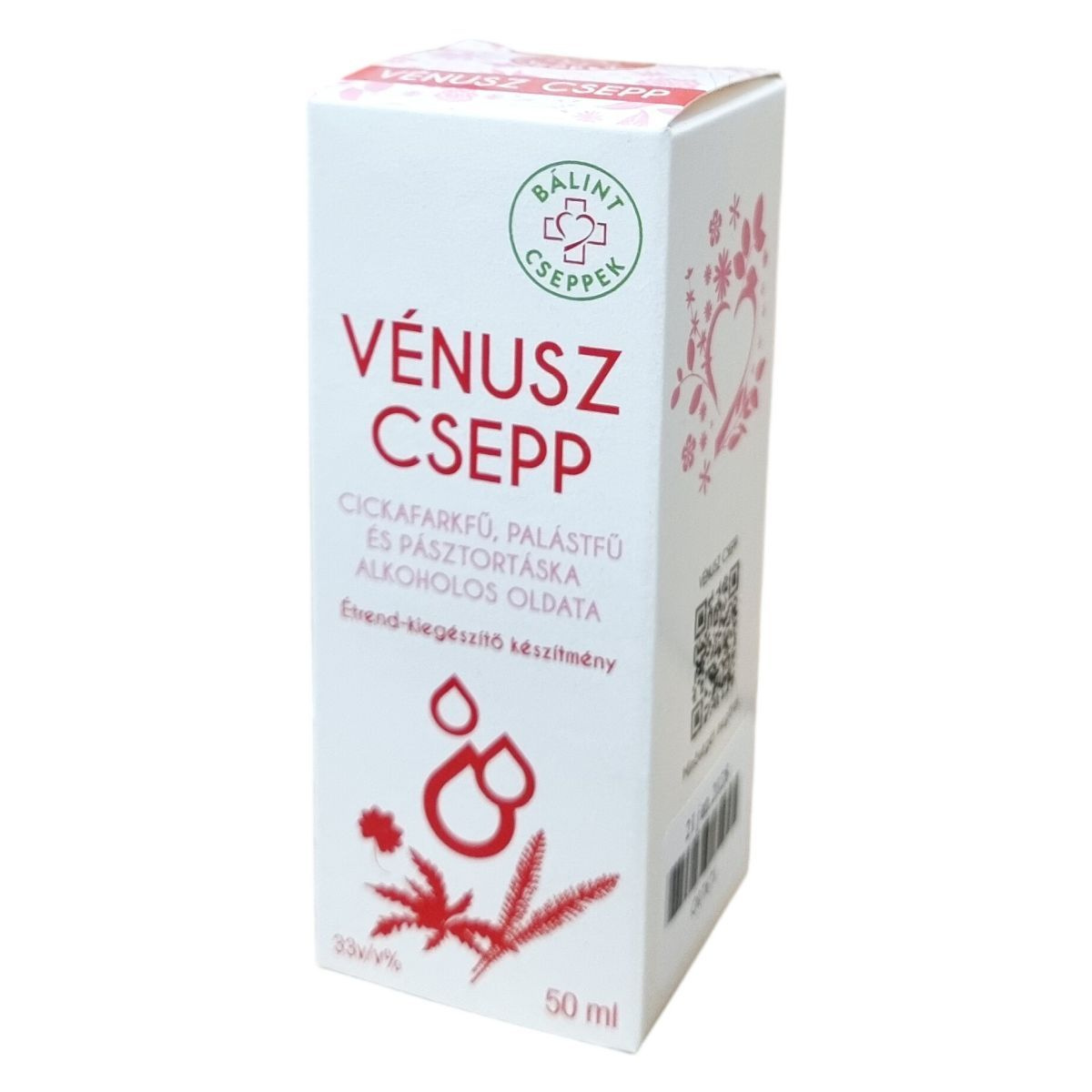 A Vénusz Csepp 33 térfogatszázalékos alkoholt tartalmazó oldat, amely cickafarkfűből, palástfűből és pásztortáskából készül. A cickafark illóolajat, azon belül azulént tartalmaz, a palástfű tanninokat, míg a pásztortáska flavonoidokat. A termékben üledékesség előfordulhat, ami nem befolyásolja a készítmény minőségét és hatását. Nettó térfogata 50 ml, amelyet a Herbárium 2000 Kft. magyarországi székhelyén gyártanak.