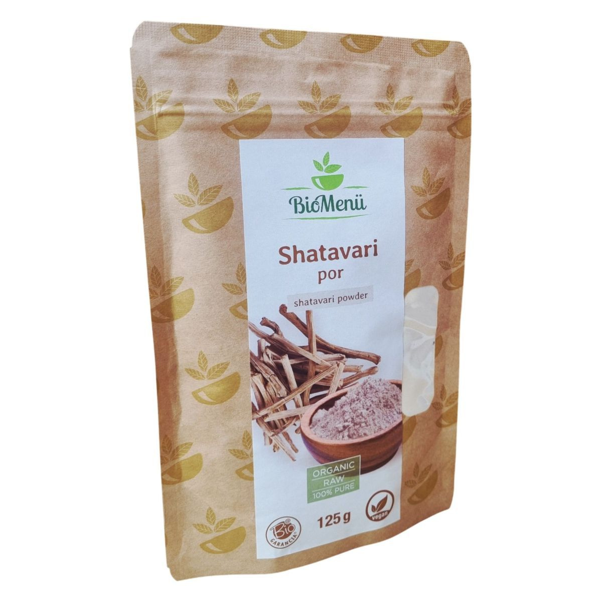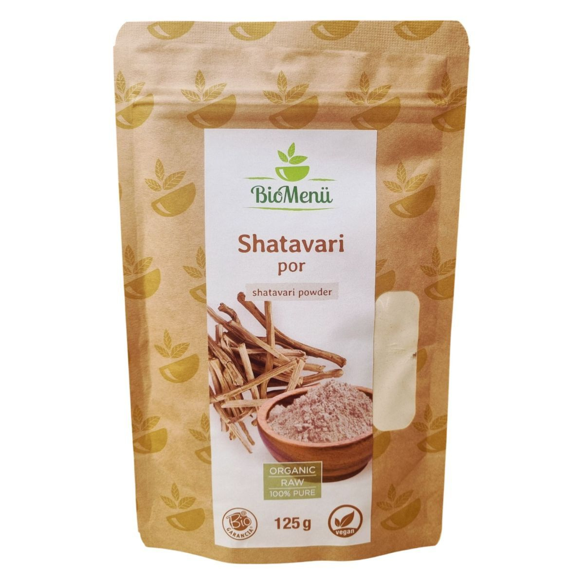 A BioMenü Shatavari por egy organikus és nyers étrend-kiegészítő, amely 100% bio shatavari port tartalmaz. A termék vegán és bio minősítéssel rendelkezik, és Indiából származik. A shatavari, más néven asparagus racemosus, egy hagyományos növényi alapanyag, amelyet az ájurvédikus gyógyászatban is használnak. A termék 125 grammos kiszerelésben kapható, és a csomagolás 41-125 adagot tartalmaz, attól függően, hogy napi 1-3 grammot fogyasztunk belőle. A termék táplálkozási tulajdonságai változhatnak a környezeti feltételektől függően, ezért fontos a megfelelő tárolás. A termék forgalmazója a Caleido IT-Outsource Kft., és rendelkezik HU-ÖKO-02 tanúsítvánnyal.