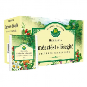 Mielőtt elkezdené a gyógyhatású készítményt alkalmazni, olvassa el figyelmesen az alábbi betegtájékoztatót. E recept nélkül kapható gyógyhatású szerrel Ön enyhe, múló panaszokat kezelhet orvosi felügyelet nélkül. Az optimális hatás érdekében azonban, elengedhetetlen készítmény körültekintő, előírásszerű alkalmazása. Tartsa meg a betegtájékoztatót, mert a benne szereplő információkra a későbbiekben is szüksége lehet. Herbária Emésztést elősegítő filteres teakeverék(Herbária Zrt.)Gyógyszernek nem minősülő gyógyhatású készítmény. A tea hatását népgyógyászati tapasztalatok, míg összetevőinek hatását szakirodalmi adatok igazolják. Hatás / tulajdonság: A teakeverék komponenseinek hatóanyagai serkentik az emésztőmirigyek működését, elősegítik az epehólyag kiürülését. Görcsoldó hatása révén csökkenti a puffadásos tüneteket, enyhe szélhajtó hatású. Mi a hatóanyaga? 0, 20 g Borsosmentalevél (Menthae pip. folium), 0, 20 g Orvosi ziliz gyökér (Althaeae radix), 0, 15 g Igazi édesgyökér (Liquiritiae radix), 0, 15 g Fehérüröm leveles vagy virágos hajtás (Absinthii herba), 0, 10 g Édeskömény termés (Foeniculi dulcis fructus), 0, 10 g orvosi pemetefű (Marrubii herba), 0, 10 g Kamillavirágzat (Matricariae flos) porított formában/filter. Mit tartalmaz még a készítmény? A teakeverék a gyógynövényeken kívül mást nem tartalmaz. Mikor ajánlott a készítmény alkalmazása? Emésztési panaszok, teltségérzet, puffadás, bélgörcs esetén. Mikor nem ajánlott a készítmény alkalmazása? A teakeveréket ne fogyassza bélelzáródás, a belek akut gyulladásos megbetegedései vagy ismeretlen eredetű hasi fájdalom, valamint bármely alkotórésszel szembeni túlérzékenység (pl. fészkesvirágzatúak, mentol, anetol) esetén. Mit kell tudni az alkalmazás megkezdése előtt? Amennyiben még a tea összetevőit korábban nem alkalmazta, úgy a készítményalkalmazását kis adagokban kezdje el, és ha nem jelentkeznek allergiás reakciók, akkor emelheti a napi adagot. Alkalmazhatják-e a készítményt gyermekek? A teát gyermekek 6 éves kortól fogyaszthatják. Alkalmazható-e a tea más gyógyszerekkel? A teakeverék összetevőire vonatkozóan a javasolt adagolásban nem állnak rendelkezésre más szerek hatását befolyásoló adatok. Alkalmazható-e a tea várandósság és szoptatás ideje alatt? Ezen élethelyzetekben a tea nem alkalmazható. Hogyan és milyen adagolásban kell a teát fogyasztani? 2 filter teakeveréket 1 csésze (kb. 2, 5 dl) forró vízzel leönteni, lefedve 10 percig állni hagyni, majd a filtereket kiemelni. Étkezés előtt, naponta kétszer, délben és este az így elkészített 1-1 csészényi teát, tetszés szerint ízesítve langyosan fogyasztani. Milyen nem kívánt hatást válthat ki a készítmény? A teakeverék bármely összetevőjével szembeni egyéni túlérzékenység előfordulhat. Az adagolási javaslat betartása esetén is nagyon ritkán allergiás bőrreakciók, pl. kiütések, csalánkiütés, nehézlégzés, arc-, száj-, és torok ödéma tünetei jelentkezhetnek. Ha nem várt hatást észlel, hagyja abba a tea alkalmazását és forduljon orvosához. Mire kell még ügyelni a készítmény alkalmazása során? Ha szívre ható glikozidot tartalmazó vagy vizelethajtó gyógyszert szed, ne fogyassza kúraszerűen a teát. Mennyi ideig alkalmazható a készítmény? A teakeverék kúraszerűen is alkalmazható (max. 4-6 hét).