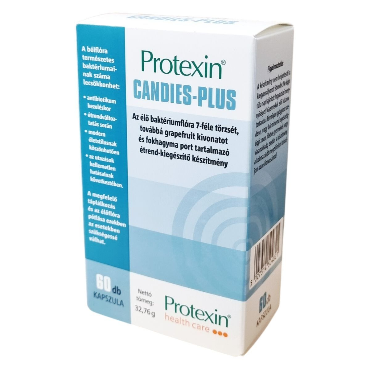 A Protexin® CANDIES-PLUS olyan étrend-kiegészítő készítmény, amely élő baktériumtörzseket, grapefruit kivonatot és fokhagyma port tartalmaz. A bélflóra természetes baktériumainak száma különböző okokból, például antibiotikum kezelés, étrendváltoztatás, modern életstílus vagy utazások kellemetlen hatásai miatt lecsökkenhet. Ilyenkor a megfelelő táplálkozás mellett az élőflóra pótlása szükségessé válhat. A termék 7-féle baktériumtörzset tartalmaz élő formában, amelyek együtt hozzájárulhatnak a bélflóra egészségének támogatásához. A Protexin® CANDIES-PLUS kapszula nettó tömege 32,76 g, a termék hűtést nem igényel, és alkalmazása során fontos betartani az ajánlott mennyiséget, valamint a gyermekek elől való elzárást. A készítmény szója- és tejtartalmú, ugyanakkor a benne lévő tejmennyiség nem feltétlenül befolyásolja a laktóz-intoleranciában szenvedőket. A termék gyártója az ADM Protexin Limited, forgalmazója a VitaminKosár Kft.