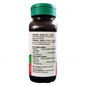 A Jamieson A+D3 vitamin étrend-kiegészítő hozzájárulhat a látás és a bőr egészségének fenntartásához, valamint az immunrendszer normál működéséhez. A D-vitamin támogathatja a csontok és fogak egészségét.