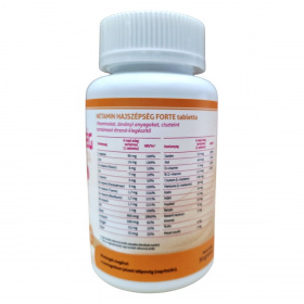 A Netamin Hajszépség Forte tabletta egy vitaminokat, ásványi anyagokat és ciszteint tartalmazó étrend-kiegészítő, amely 27 hatóanyagával hozzájárulhat a haj normál állapotának fenntartásához. A termék biotint, szelént és cinket tartalmaz, amelyek segíthetnek a haj egészségének megőrzésében. A mangán hozzájárulhat a normál kötőszövet-képződéshez, míg a réz támogathatja a haj normál pigmentációját. A tabletta bio étrendi irányzatot követ, és napi egy tabletta szedése javasolt étkezés előtt.
