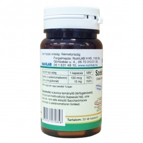 A Pharma NutriLAB szelén kapszula cinkkel készül, amely természetes forrásból származó szerves szelént és cinket tartalmaz. Az étrend-kiegészítő elősegítheti a pajzsmirigy és az immunrendszer normál működését, támogatva továbbá a haj és köröm megfelelő állapotát, valamint részt vehet a normál spermaképződés folyamatában. A termék németországi gyártmány, 30 darab kapszulát tartalmaz, nettó tömege 15 g. Az összetevők között kukorica keményítő, hidroxipropil-metil-cellulóz kapszula héj, cink-glükonát, továbbá nem aktív élesztő szerepel, amely a L-szelenometionin forrása. Az étrend-kiegészítő alkalmazása nem helyettesíti a kiegyensúlyozott és változatos étrendet.