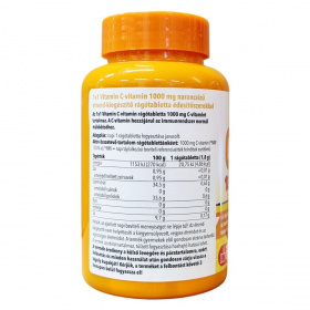 C-vitamint tartalmazó narancs ízű étrend-kiegészítő rágótabletta szorbittal és édesítőszerrel.