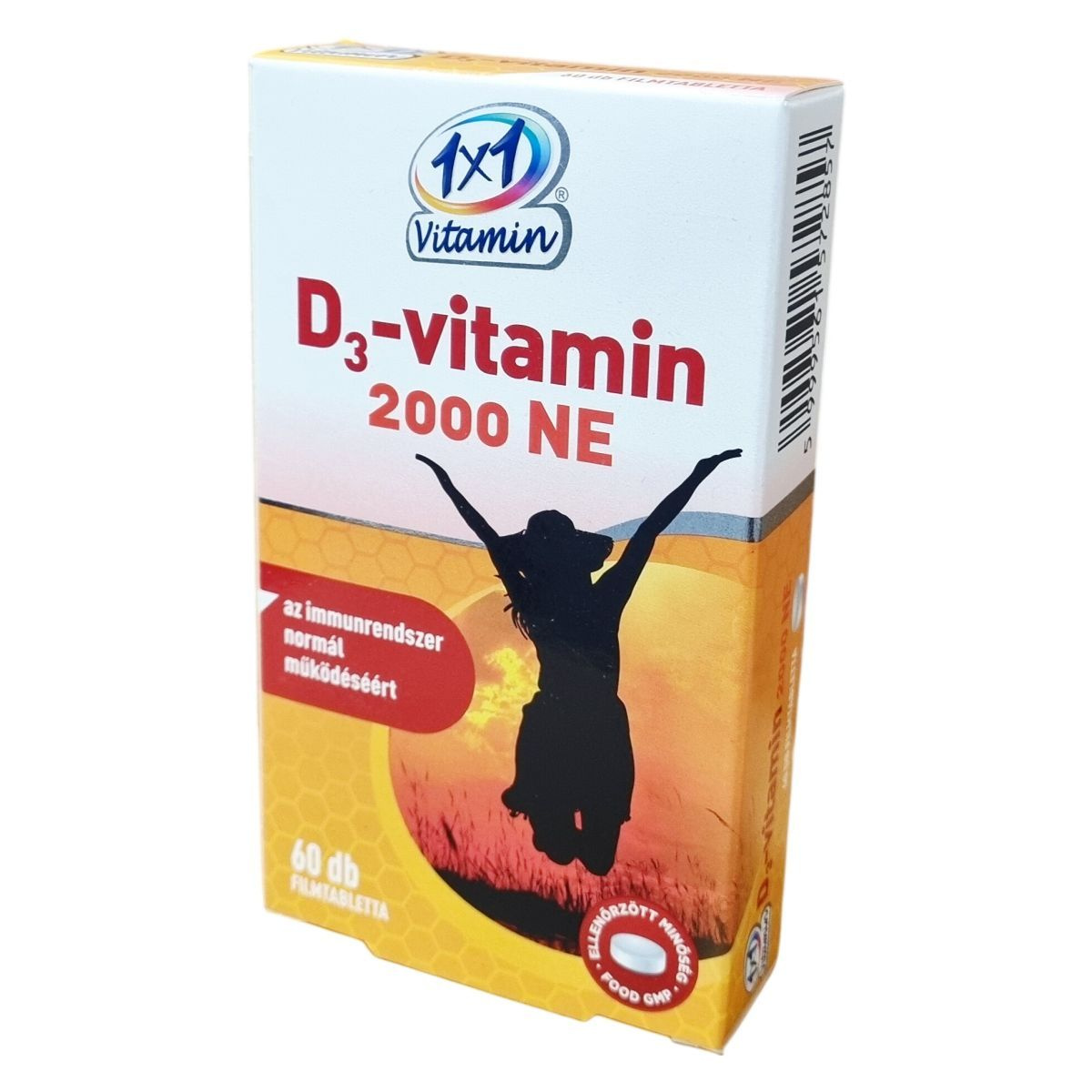 Az 1x1 Vitamin D3-vitamin 2000 NE filmtabletta 2000 NE D3-vitamint tartalmaz tablettánként, amely hozzájárulhat az immunrendszer normál működéséhez. A termék nettó tömege 19,2 g, és 60 darab 320 mg-os tablettát tartalmaz. Származási helye az Európai Unió, forgalmazója az INNOPHARM Gyógyszergyártó Kft. A termék összetevői között megtalálhatók többek között tömegnövelő szerek, emulgeálószerek, csomósodást gátló anyagok, színezékek és fényzőanyag. Fontos, hogy az ajánlott napi adagolást ne lépjük túl, és a terméket gyermekek elől gondosan elzárva, megfelelő körülmények között tároljuk.