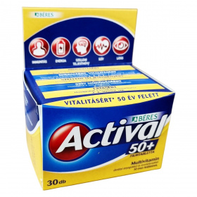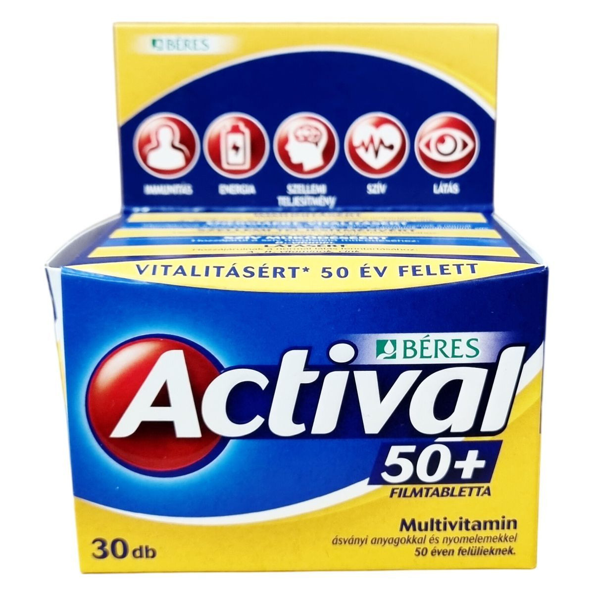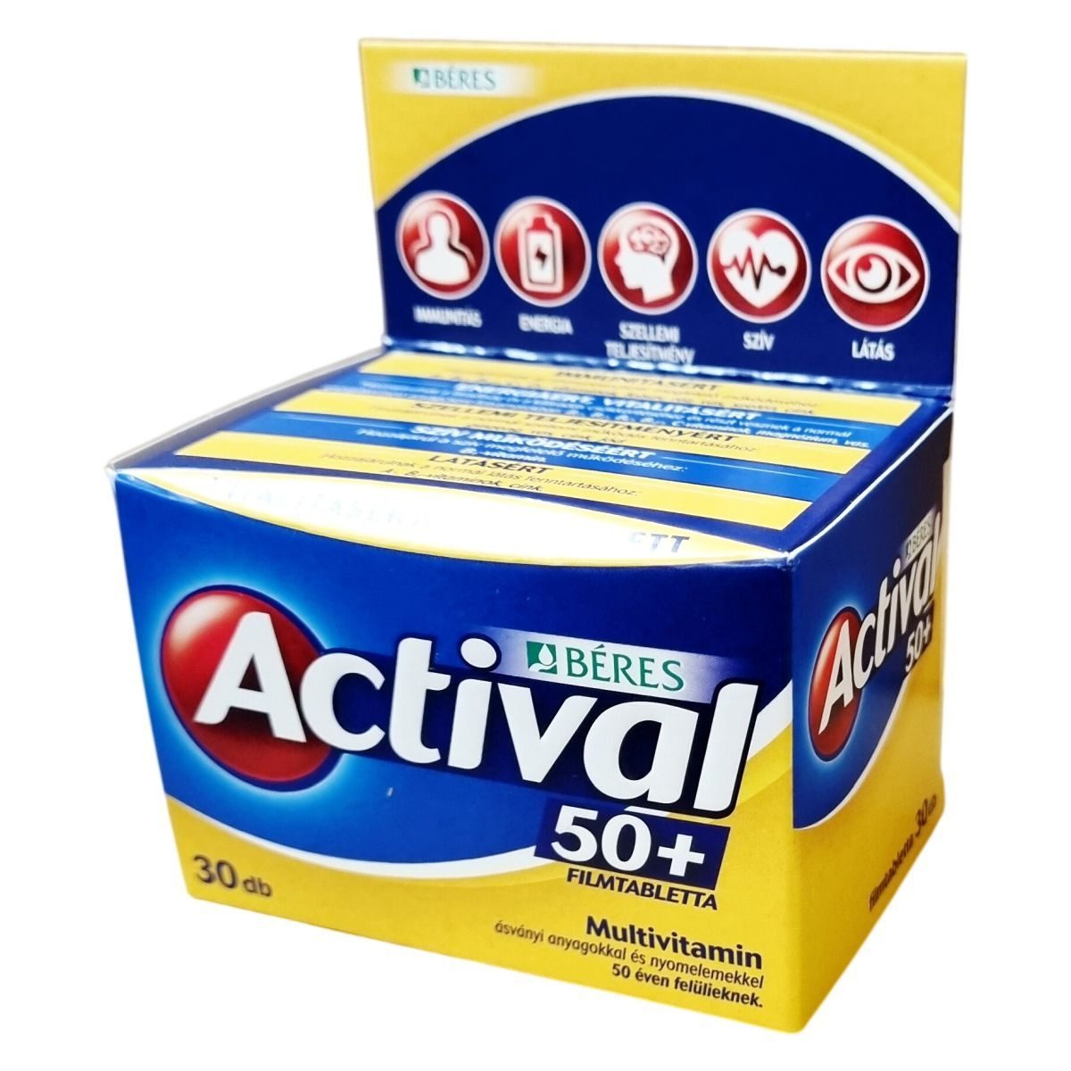 Az Actival 50+ olyan komplex, multivitamin étrend-kiegészítő készítmény, amely kifejezetten a 50 éven felüli korosztály igényeihez igazított, vitaminokat, ásványi anyagokat és nyomelemeket tartalmaz. Hatóanyagai hozzájárulhatnak a szervezet vitamin-, ásványi anyag- és nyomelem-szükségletének biztosításához, ami támogatja a teljesítőképesség fenntartását és az immunrendszer normál működését. A termék alkalmazása ajánlott például csökkent felszívódás, kiegyensúlyozatlan táplálkozás vagy betegségek utáni lábadozás esetén. A készítmény hozzájárulhat továbbá az immunrendszer megfelelő működéséhez, a fáradtság és kifáradás csökkentéséhez, a normál energiaanyagbcsere-folyamatokhoz, a szellemi funkciók fenntartásához, a szív megfelelő működéséhez, valamint a normál látás megőrzéséhez az összetételében található vitaminok és ásványi anyagok révén.