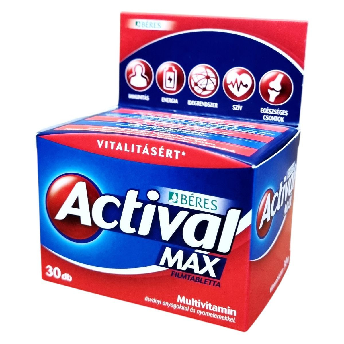 Az Actival Max filmtabletta egy komplex étrend-kiegészítő, amely multivitaminokat, ásványi anyagokat és nyomelemeket tartalmaz. A termék emelt C-vitamin tartalmú, amely hozzájárulhat az immunrendszer megfelelő működéséhez. A termék fogyasztása elsősorban jelentős fizikai és szellemi igénybevétel, kiegyensúlyozatlan táplálkozás, valamint betegségek utáni lábadozás esetén ajánlott. A készítmény összetevői hozzájárulhatnak a szervezet megfelelő vitamin, ásványi anyag és nyomelem ellátottságához, ezáltal támogathatják a jó közérzet és a teljesítőképesség fenntartását.
