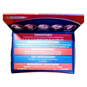 A javasolt napi adagnál nem szabad többet beszedni! Gyermekek elől gondosan elzárandó! Az étrend-kiegészítő nem helyettesíti a kiegyensúlyozott, vegyes étrendet és az egészséges életmódot. Kumarin típusú véralvadásgátlót szedő betegek a készítmény szedése előtt kérjék ki orvosuk véleményét.