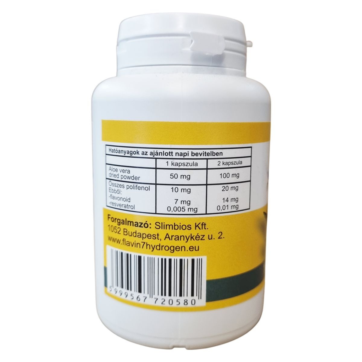 Flavin 7bioflavonoid komplex (vörös szőlő mag-héj szárítmány, cirok mag-héj szárítmány, feketeszeder mag-héj szárítmány, feketecseresznye héj szárítmány, feketeribizli mag-héj szárítmány, pirosribizli mag-héj szárítmány, szilva héj szárítmány, almahéj szárítmány), kendermag őrlemény, HPMC kapszula (hipromellóz, sűrítőanyag, emulgeálószer), aloe vera powder