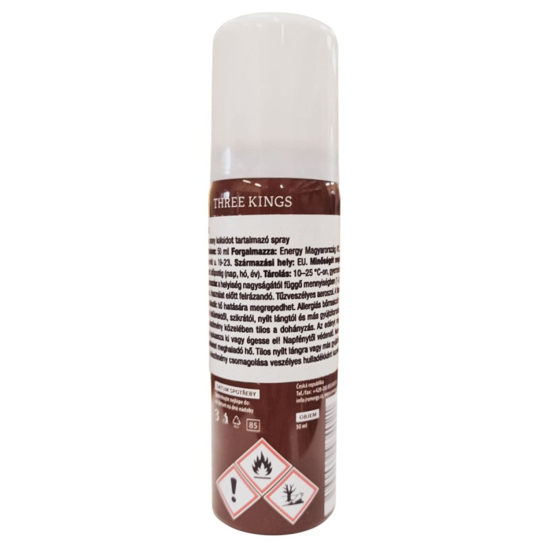 A spray értékes tömjén, mirha, szegfűszeg, fahéj, eukaliptusz, rozmaring és citrom esszenciákat, valamint igazi aranyrészecskéket tartalmaz.