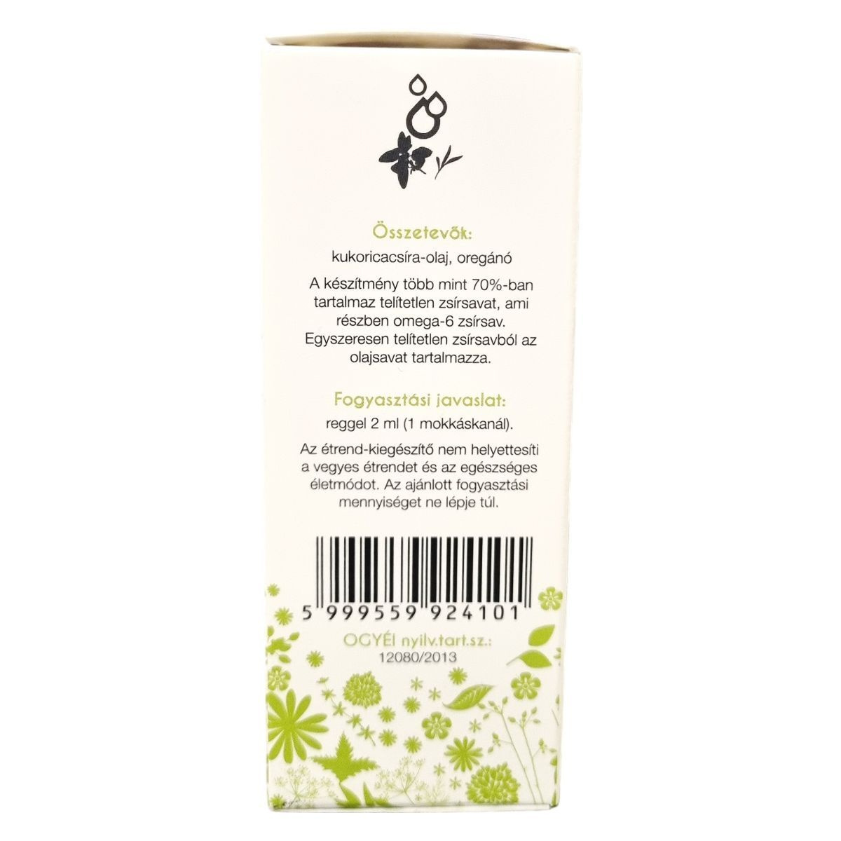 Az oregánó kukoricacsíra-olajos kivonat egy természetes alapú étrend-kiegészítő, amely segítheti a szervezet egészséges működését az értékes zsírsavak bevitele révén.