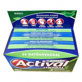 Az Actival +Herbal filmtabletta komplex étrend-kiegészítő, amely multivitaminokat, ásványi anyagokat, növényi kivonatokat, rutint, likopint és luteint tartalmaz. Négy növényi kivonattal, csipkebogyó-, gyömbér-, ginzeng- és keserűnarancs-kivonattal készült. Hatóanyagai hozzájárulnak a felnőtt szervezet vitamin-, ásványi anyag- és nyomelem-szükségletének ellátottságához. A termék támogatni segítheti az immunrendszer működését, energiaszint fenntartását, szellemi és fizikai teljesítményt, valamint a kiegyensúlyozottságot. Felnőttek számára ajánlott napi 1 filmtabletta formájában, étkezés után.