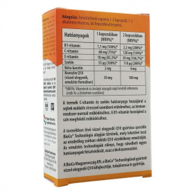 A termék C-vitamin és szelén hatóanyaga hozzájárul a sejtek oxidatív stresszel szembeni védelméhez, az immunrendszer normál működéséhez. A B1-vitamin hozzájárul a szív megfelelő működéséhez. A termékben lévő vízzel elegyedő Q10 gyártása speciális BioCo Technológia alapján történik, mely lehetővé teszi az eredetileg zsírban oldódó Q10 vízoldékony emulzióját.