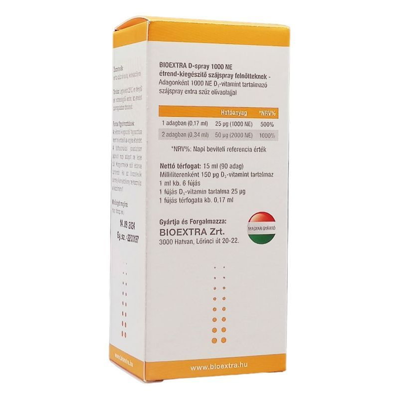 Adagonként 1000 NE D3-vitamint tartalmazó szájspray extra szűz olívaolajjal.