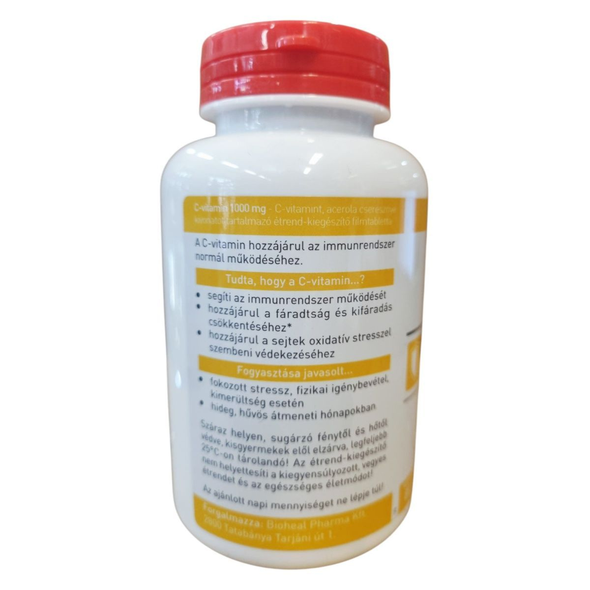 A bioheal C-vitamin 1000 mg filmtabletta acerola cseresznye kivonattal készült, amely hozzájárulhat az immunrendszer normál működéséhez, valamint a fáradtság és kifáradás csökkentéséhez. A termék különösen ajánlott fokozott stressz, fizikai igénybevétel, kimerültség esetén, valamint hideg, hűvös átmeneti hónapokban. A C-vitamin antioxidáns tulajdonságai révén támogathatja a sejtek oxidatív stresszel szembeni védekezését. A termék minőségét megőrzi a doboz alján jelzett időpontig.